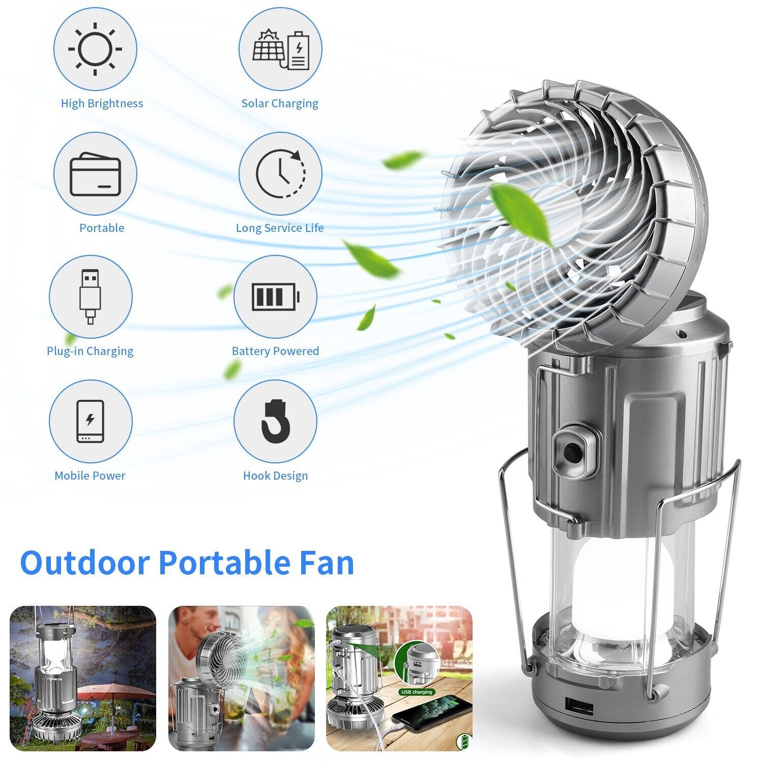 6 in 1 Portable LED Camping Lantern with Fan, Solar Charging Camping Light, Tent Camping Fan (Large Size)